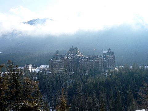 This has been a very, very long day as I travelled directly from Wollongong, New South Wales, Australia to Banff, Canada. I went by train for two hours, then by plane for 12 hours to LAX. I called my sister there but ran out of coinage. I left LA for Seattle in a two and one half hour flight. The airport was overflowing with people as the snow storms in Canada delayed the north bound travel. As it was, my plane left the airport appropriately sprayed with de-icer, an hour late to fly to Calgary – one and one half hours. Arriving late into Calgary – where there was a Tim Horton’s donut shop! Hooray! – I had missed my connecting bus to Banff. It was no problem as I went with the next one – two hours on the road. I arrived, obstensively, not long after I left Australia; at least is was the same day.